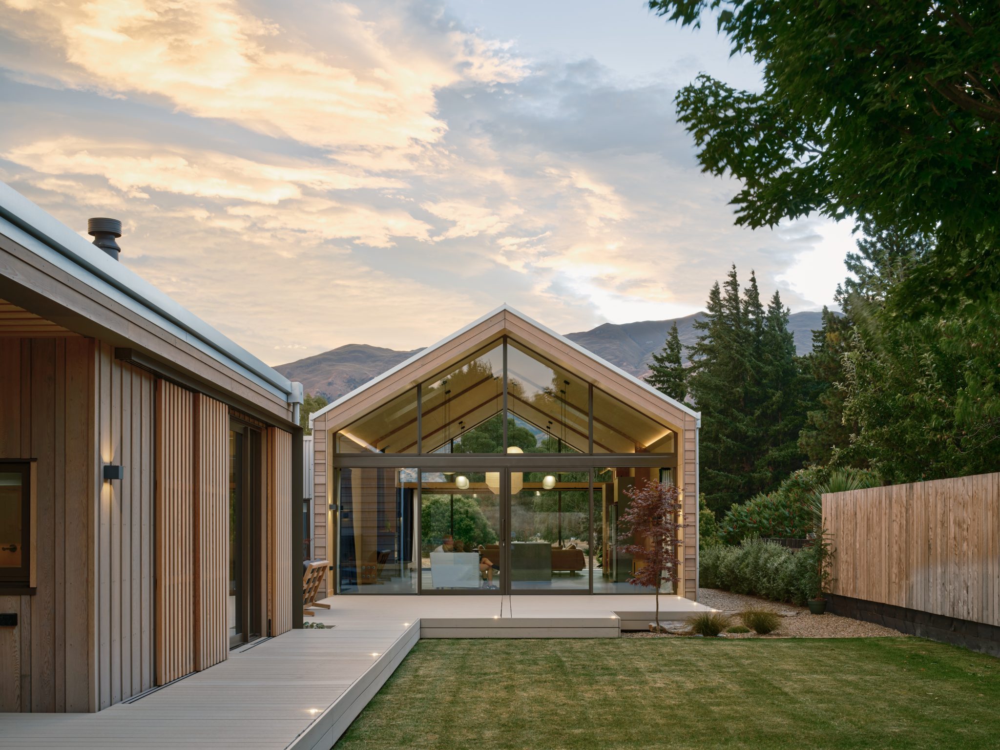 This sophisticated holiday home by Studio Pacific is composed of three pavilions and was inspired by mountain huts, Japanese interiors, extreme sports, yoga, and hospitality.