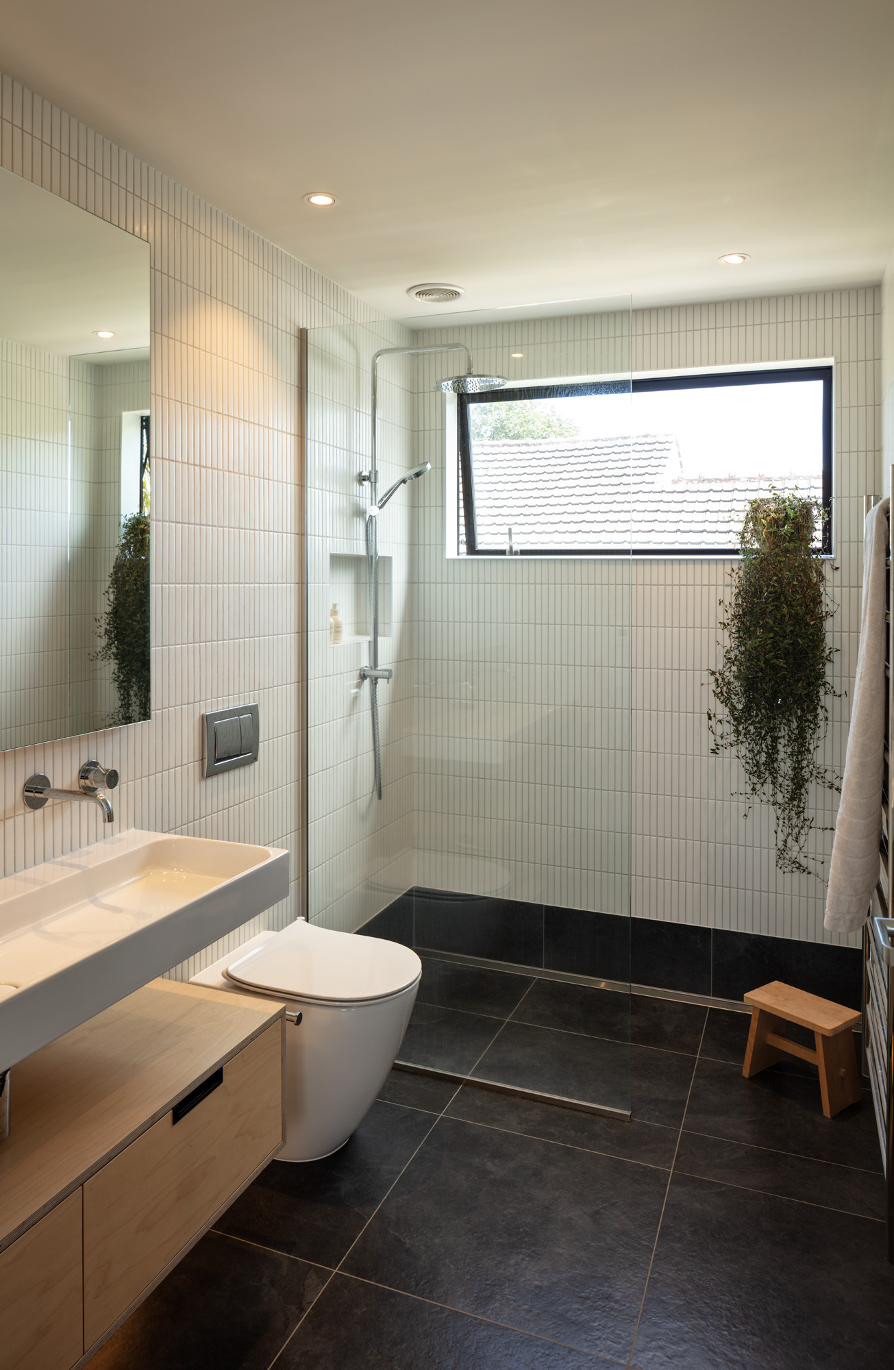 Loosely translated from Dutch, Zonnebries means ‘sun breeze’. In this house the use of the external vertical shading structure is inspired by a similar architectural idea: that of brise-soleil — meaning ‘sun breaker’ — a type of shading famously introduced to contemporary buildings by French architect Le Corbusier.